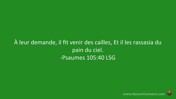 À leur demande, il fit venir des cailles, Et il les rassasia du pain du ciel. -Psaumes 105:40 LSG