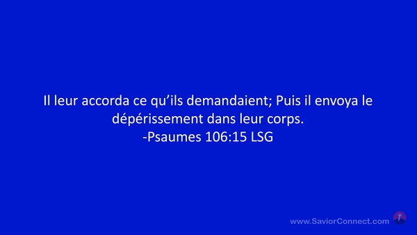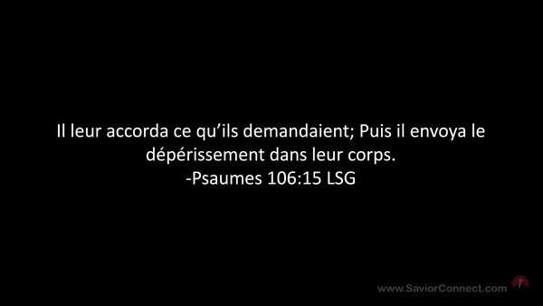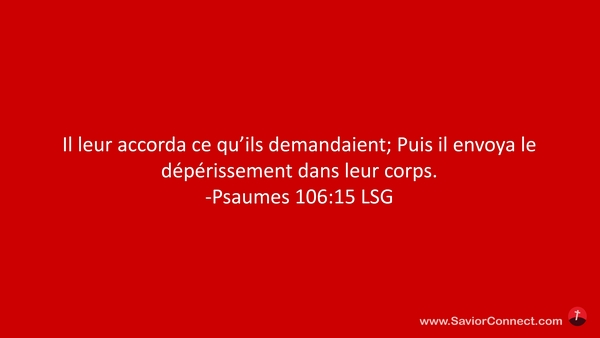Il leur accorda ce qu'ils demandaient; Puis il envoya le dépérissement dans leur corps. -Psaumes 106:15 LSG