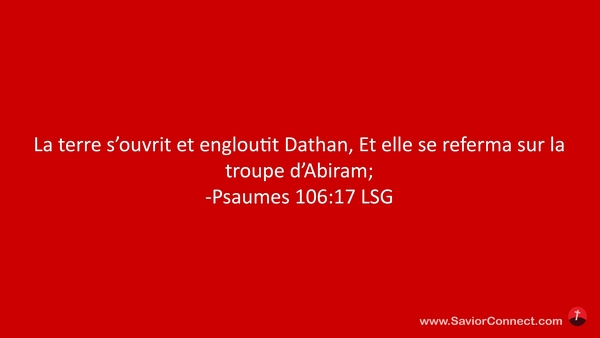 La terre s'ouvrit et engloutit Dathan, Et elle se referma sur la troupe d'Abiram; -Psaumes 106:17 LSG