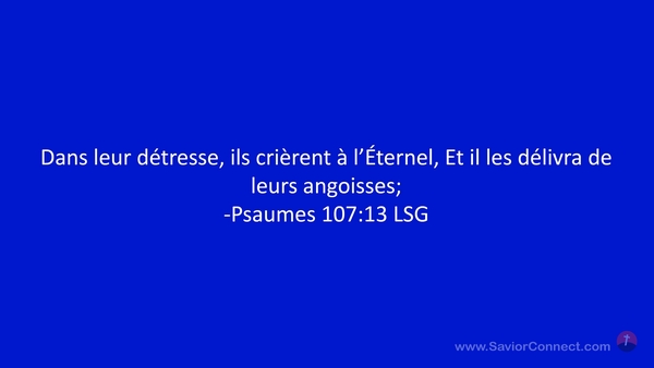 Dans leur détresse, ils crièrent à l'Éternel, Et il les délivra de leurs angoisses; -Psaumes 107:13 LSG