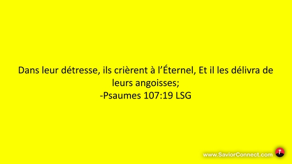 Dans leur détresse, ils crièrent à l'Éternel, Et il les délivra de leurs angoisses; -Psaumes 107:19 LSG