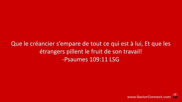 Que le créancier s'empare de tout ce qui est à lui, Et que les étrangers pillent le fruit de son travail! -Psaumes 109:11 LSG