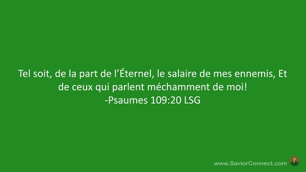 Tel soit, de la part de l'Éternel, le salaire de mes ennemis, Et de ceux qui parlent méchamment de moi! -Psaumes 109:20 LSG