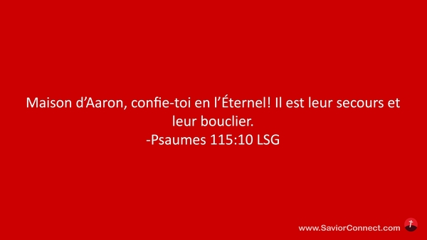 Maison d'Aaron, confie-toi en l'Éternel! Il est leur secours et leur bouclier. -Psaumes 115:10 LSG
