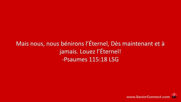 Mais nous, nous bénirons l'Éternel, Dès maintenant et à jamais. Louez l'Éternel! -Psaumes 115:18 LSG