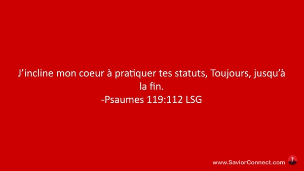 J'incline mon coeur à pratiquer tes statuts, Toujours, jusqu'à la fin. -Psaumes 119:112 LSG