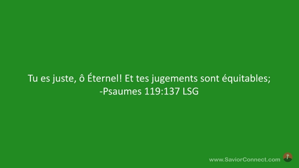 Tu es juste, ô Éternel! Et tes jugements sont équitables; -Psaumes 119:137 LSG