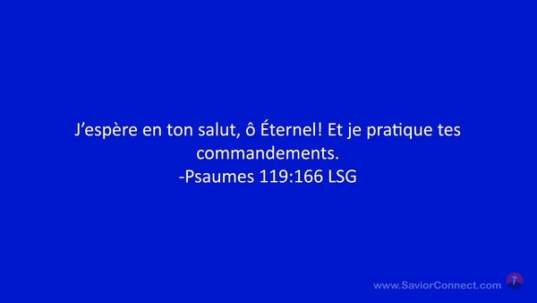 J'espère en ton salut, ô Éternel! Et je pratique tes commandements. -Psaumes 119:166 LSG