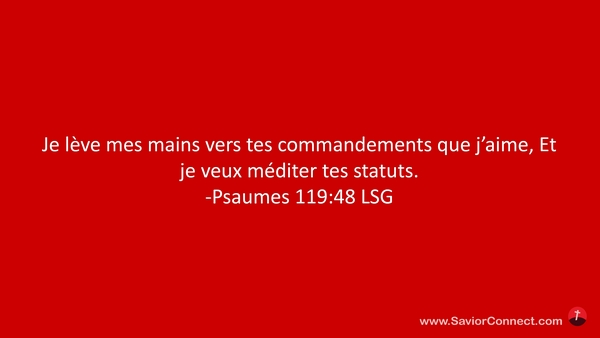 Je lève mes mains vers tes commandements que j'aime, Et je veux méditer tes statuts. -Psaumes 119:48 LSG