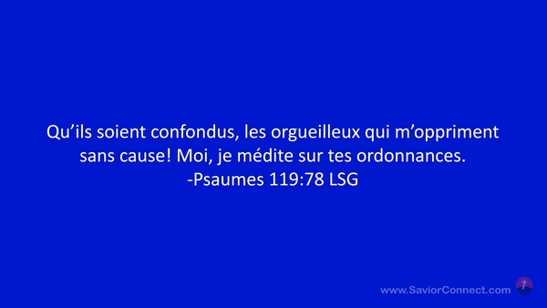 Qu'ils soient confondus, les orgueilleux qui m'oppriment sans cause! Moi, je médite sur tes ordonnances. -Psaumes 119:78 LSG