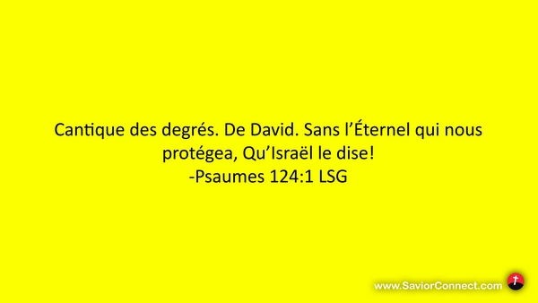 Cantique des degrés. De David. Sans l'Éternel qui nous protégea, Qu'Israël le dise! -Psaumes 124:1 LSG