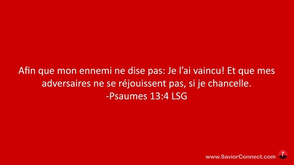 Afin que mon ennemi ne dise pas: Je l'ai vaincu! Et que mes adversaires ne se réjouissent pas, si je chancelle. -Psaumes 13:4 LSG