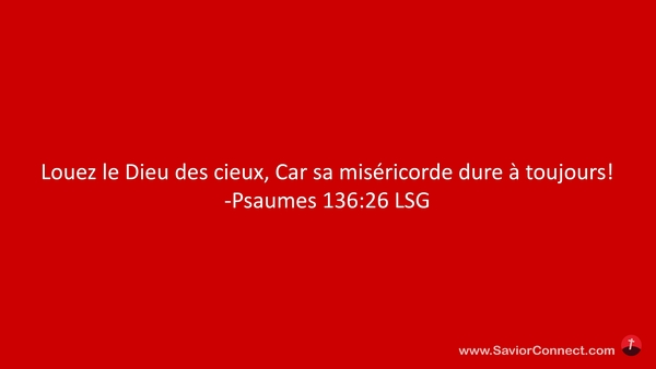 Louez le Dieu des cieux, Car sa miséricorde dure à toujours! -Psaumes 136:26 LSG