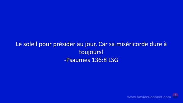 Le soleil pour présider au jour, Car sa miséricorde dure à toujours! -Psaumes 136:8 LSG