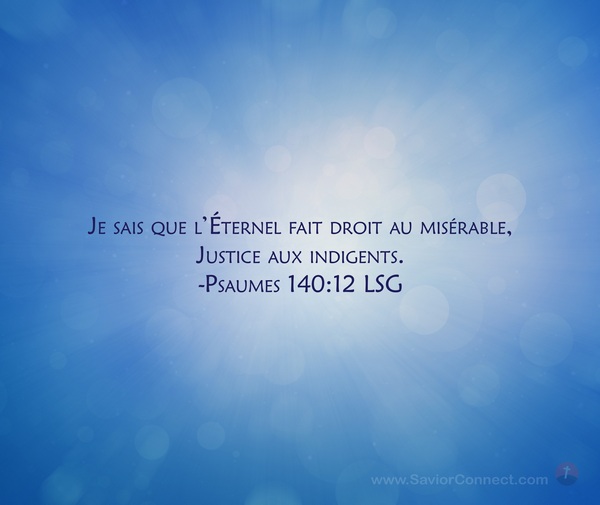Je sais que l'Éternel fait droit au misérable, Justice aux indigents. -Psaumes 140:12 LSG