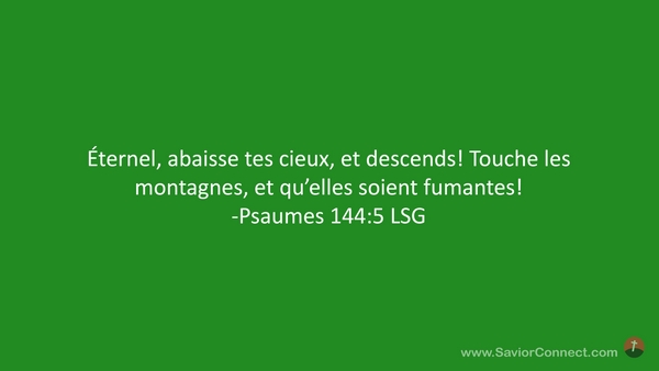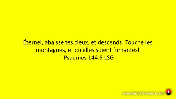 Éternel, abaisse tes cieux, et descends! Touche les montagnes, et qu'elles soient fumantes! -Psaumes 144:5 LSG