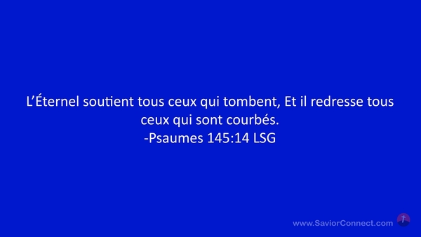 L'Éternel soutient tous ceux qui tombent, Et il redresse tous ceux qui sont courbés. -Psaumes 145:14 LSG