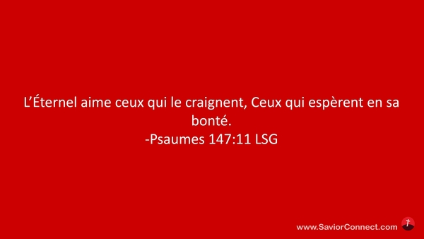 L'Éternel aime ceux qui le craignent, Ceux qui espèrent en sa bonté. -Psaumes 147:11 LSG