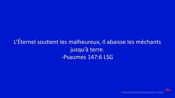 L'Éternel soutient les malheureux, Il abaisse les méchants jusqu'à terre. -Psaumes 147:6 LSG