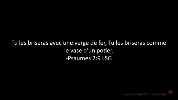 Tu les briseras avec une verge de fer, Tu les briseras comme le vase d'un potier. -Psaumes 2:9 LSG