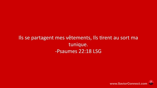 Ils se partagent mes vêtements, Ils tirent au sort ma tunique. -Psaumes 22:18 LSG