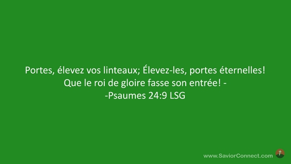Portes, élevez vos linteaux; Élevez-les, portes éternelles! Que le roi de gloire fasse son entrée! - -Psaumes 24:9 LSG