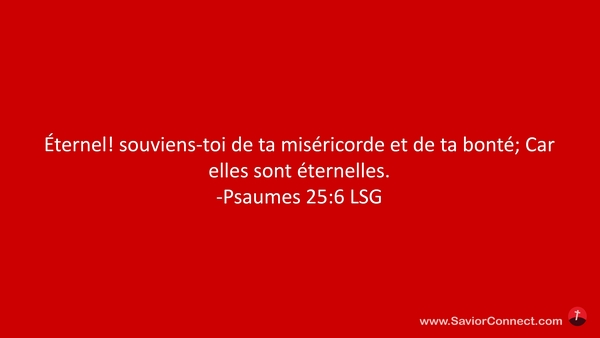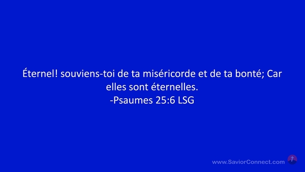 Éternel! souviens-toi de ta miséricorde et de ta bonté; Car elles sont éternelles. -Psaumes 25:6 LSG