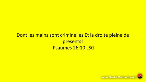 Dont les mains sont criminelles Et la droite pleine de présents! -Psaumes 26:10 LSG