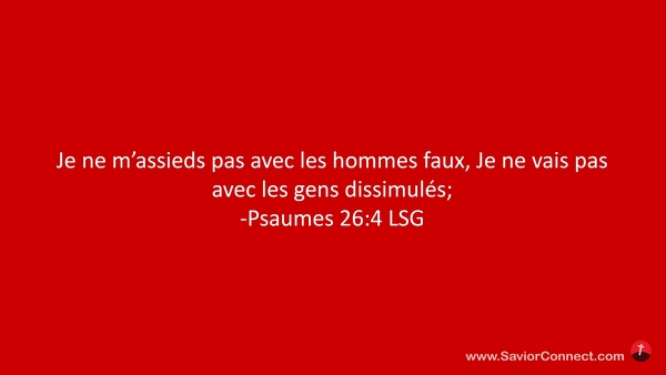 Je ne m'assieds pas avec les hommes faux, Je ne vais pas avec les gens dissimulés; -Psaumes 26:4 LSG