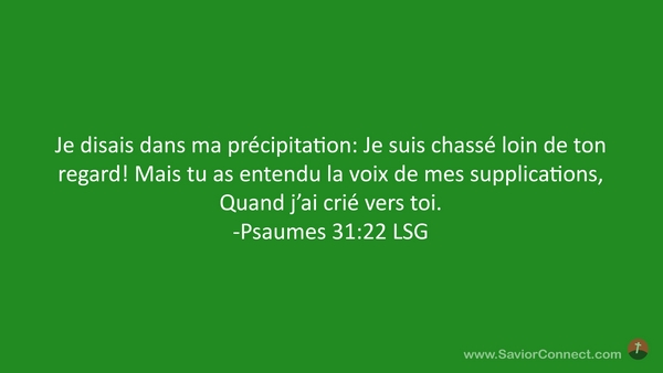 Je disais dans ma précipitation: Je suis chassé loin de ton regard! Mais tu as entendu la voix de mes supplications, Quand j'ai crié vers toi. -Psaumes 31:22 LSG