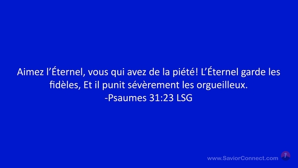 Aimez l'Éternel, vous qui avez de la piété! L'Éternel garde les fidèles, Et il punit sévèrement les orgueilleux. -Psaumes 31:23 LSG