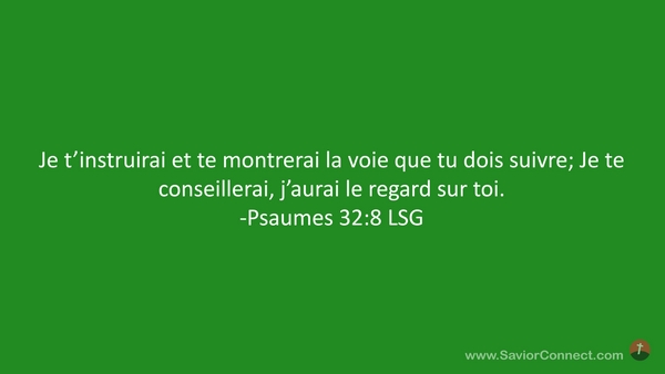 Je t'instruirai et te montrerai la voie que tu dois suivre; Je te conseillerai, j'aurai le regard sur toi. -Psaumes 32:8 LSG