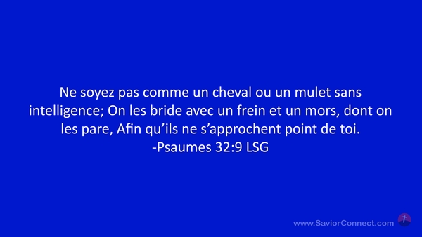 Ne soyez pas comme un cheval ou un mulet sans intelligence; On les bride avec un frein et un mors, dont on les pare, Afin qu'ils ne s'approchent point de toi. -Psaumes 32:9 LSG