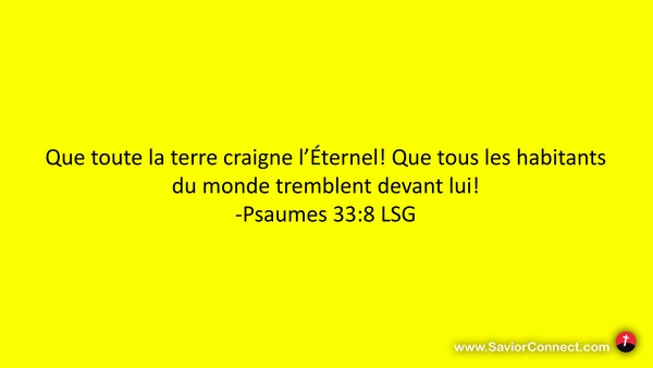 Que toute la terre craigne l'Éternel! Que tous les habitants du monde tremblent devant lui! -Psaumes 33:8 LSG