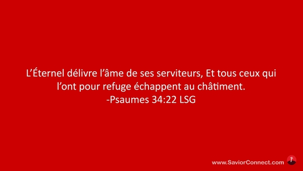 L'Éternel délivre l'âme de ses serviteurs, Et tous ceux qui l'ont pour refuge échappent au châtiment. -Psaumes 34:22 LSG