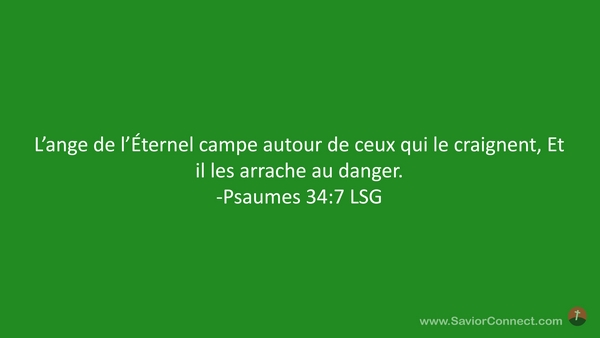 L'ange de l'Éternel campe autour de ceux qui le craignent, Et il les arrache au danger. -Psaumes 34:7 LSG