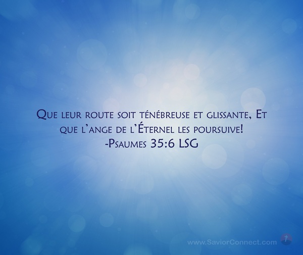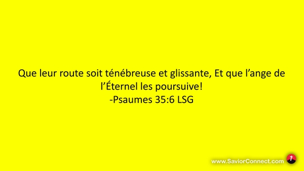 Que leur route soit ténébreuse et glissante, Et que l'ange de l'Éternel les poursuive! -Psaumes 35:6 LSG