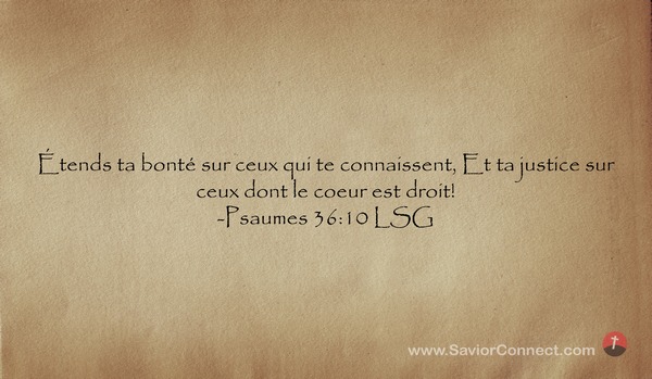 Étends ta bonté sur ceux qui te connaissent, Et ta justice sur ceux dont le coeur est droit! -Psaumes 36:10 LSG