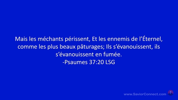 Mais les méchants périssent, Et les ennemis de l'Éternel, comme les plus beaux pâturages; Ils s'évanouissent, ils s'évanouissent en fumée. -Psaumes 37:20 LSG