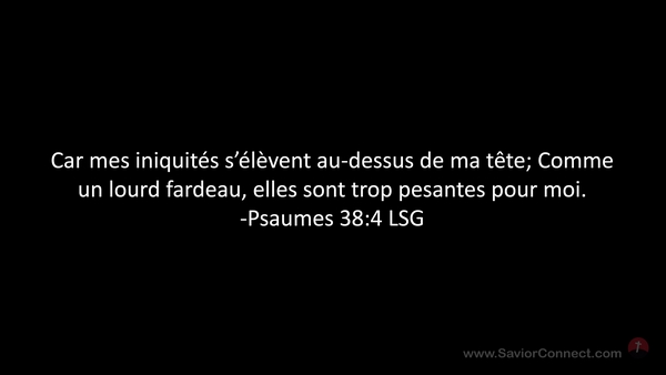Car mes iniquités s'élèvent au-dessus de ma tête; Comme un lourd fardeau, elles sont trop pesantes pour moi. -Psaumes 38:4 LSG