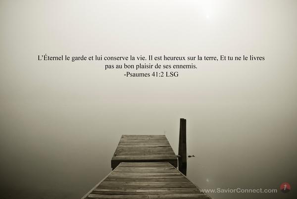 L'Éternel le garde et lui conserve la vie. Il est heureux sur la terre, Et tu ne le livres pas au bon plaisir de ses ennemis. -Psaumes 41:2 LSG