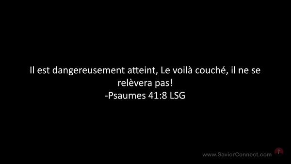 Il est dangereusement atteint, Le voilà couché, il ne se relèvera pas! -Psaumes 41:8 LSG