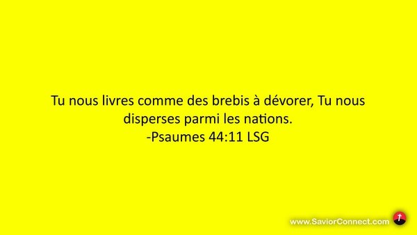 Tu nous livres comme des brebis à dévorer, Tu nous disperses parmi les nations. -Psaumes 44:11 LSG
