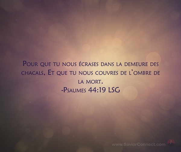 Pour que tu nous écrases dans la demeure des chacals, Et que tu nous couvres de l'ombre de la mort. -Psaumes 44:19 LSG