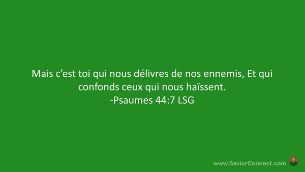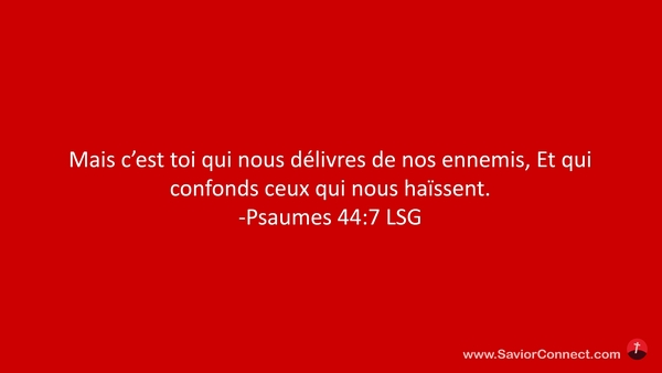 Mais c'est toi qui nous délivres de nos ennemis, Et qui confonds ceux qui nous haïssent. -Psaumes 44:7 LSG