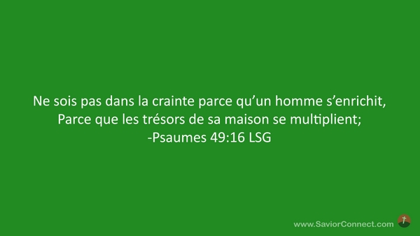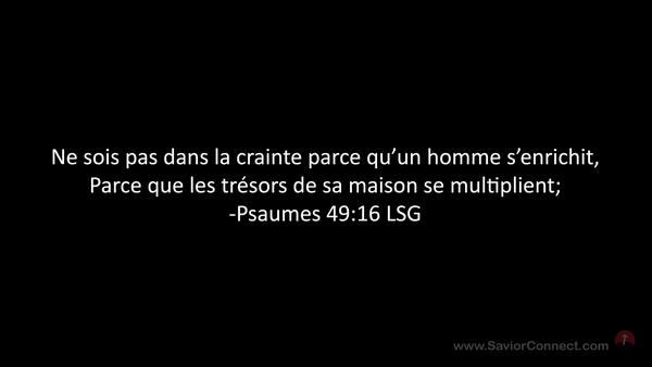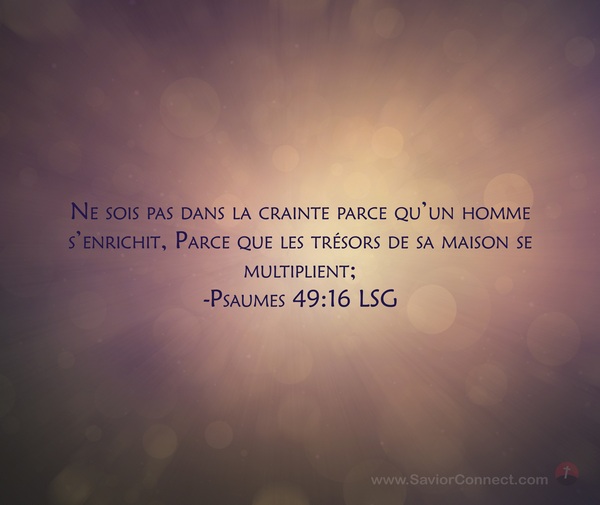 Ne sois pas dans la crainte parce qu'un homme s'enrichit, Parce que les trésors de sa maison se multiplient; -Psaumes 49:16 LSG