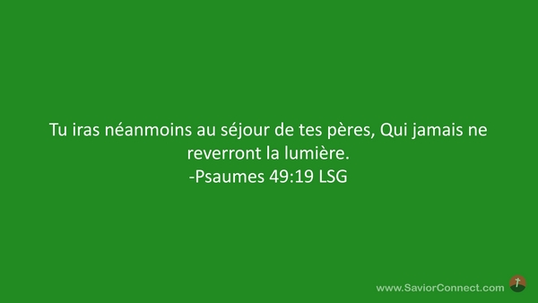 Tu iras néanmoins au séjour de tes pères, Qui jamais ne reverront la lumière. -Psaumes 49:19 LSG