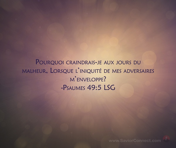 Pourquoi craindrais-je aux jours du malheur, Lorsque l'iniquité de mes adversaires m'enveloppe? -Psaumes 49:5 LSG