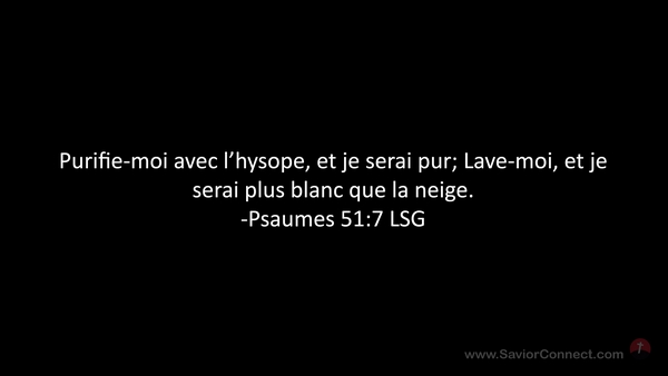 Purifie-moi avec l'hysope, et je serai pur; Lave-moi, et je serai plus blanc que la neige. -Psaumes 51:7 LSG