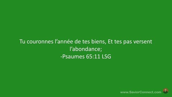 Tu couronnes l'année de tes biens, Et tes pas versent l'abondance; -Psaumes 65:11 LSG